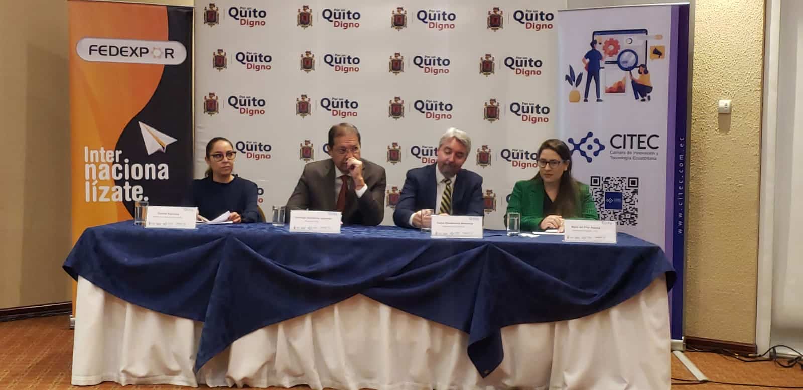Fedexpor, la Citec y el Municipio de Quito, dieron a conocer los resultados de la primera fase del programa Quito Exporta, proyecto que tiene como objetivo posesionar a Quito como ciudad de MiPymes exportadoras, fomentando la cultura exportadora y promoviendo la internacionalización de las micro, pequeñas, y medianas empresas, así como también de grupos asociativos del DMQ, enmarcado en la estrategia de reactivación económica del eje productivo municipal.