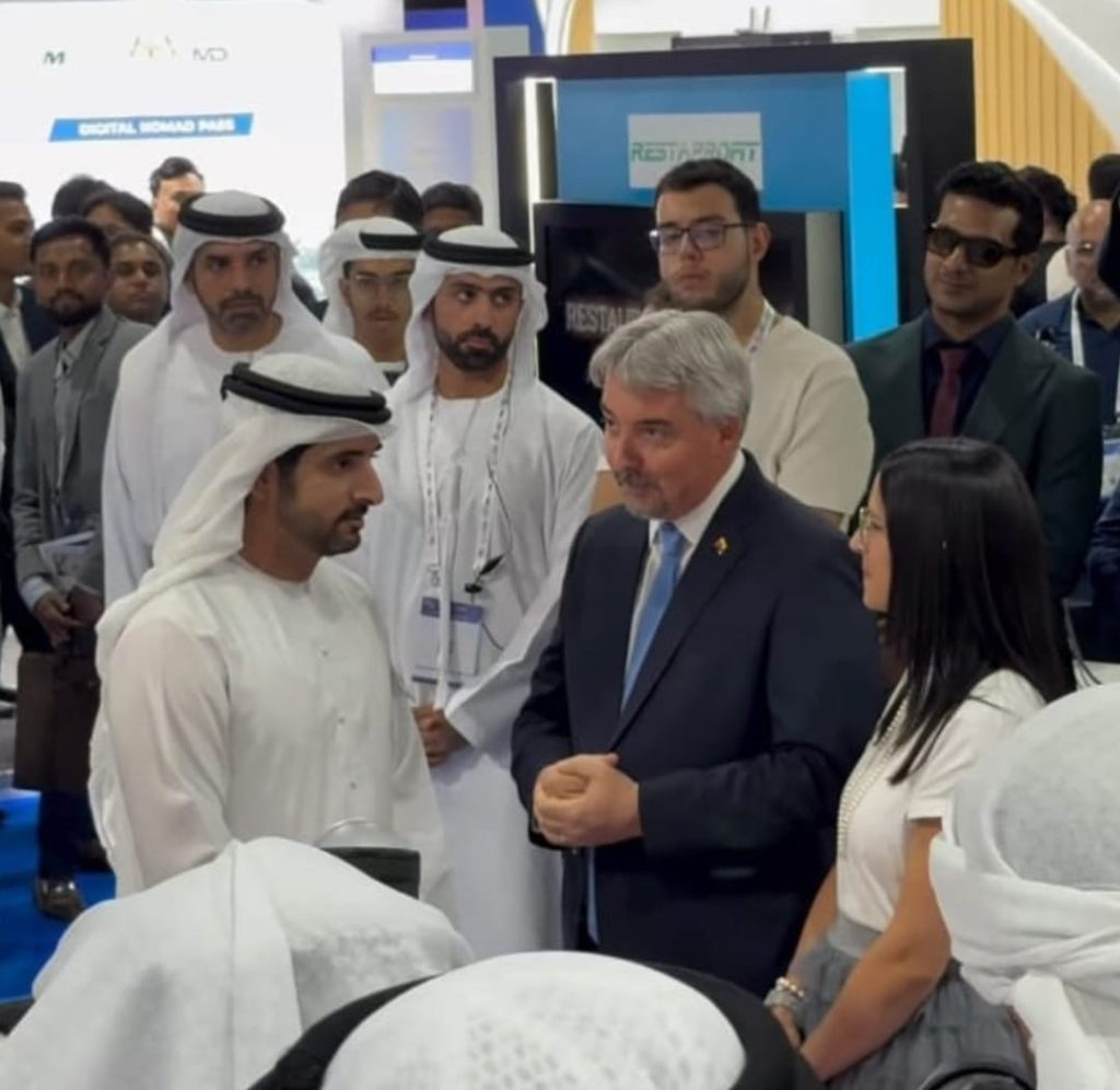 Durante la jornada, el Pabellón Ecuador recibió la visita de S.M. Sheikh Hamdan bin Mohammed bin Rashid Al Maktoum, príncipe Heredero de Dubái y vice Primer Ministro y Ministro de Defensa, y de S.M. Sheikh Mansoor bin Mohammed bin Rashid Al Maktoum, presidente del Comité Olímpico de los EAU y del Dubai Ports & Borders Security Council, a quienes se presentó la oferta tecnológica ecuatoriana conociendo de cerca las propuestas y soluciones que las empresas participantes ofrecen al mercado emiratí y global; en esta visita de la autoridades locales, estuvo presente Felipe Ribadeneira, embajador del Ecuador en los Emiratos Árabes Unidos.