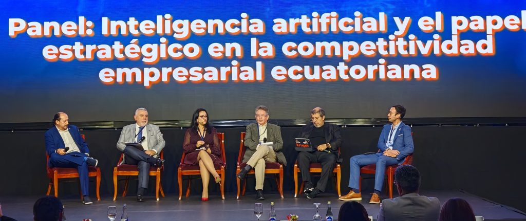 El primer panel de estuvo integrado por representantes de Produbanco, Comité Empresarial Ecuatoriano, Bridgetech y Kruger Corporation, que hablaron de la inteligencia artificial y el papel estratégico en la competitividad empresarial ecuatoriana.