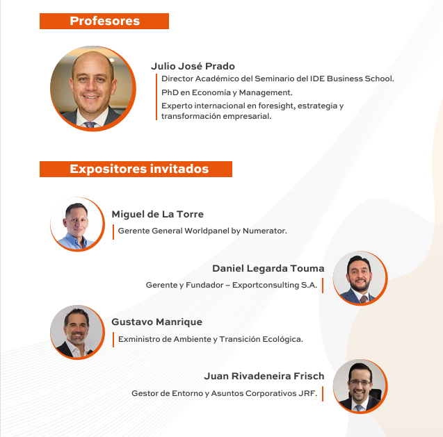 Este seminario combina análisis económico, visión estratégica y perspectiva empresarial y durante dos días intensivos, el profesor Julio José Prado, junto a expertos nacionales, abordará las grandes fuerzas que transforman la economía y los negocios: