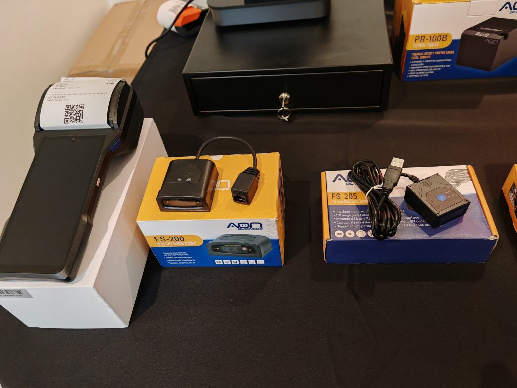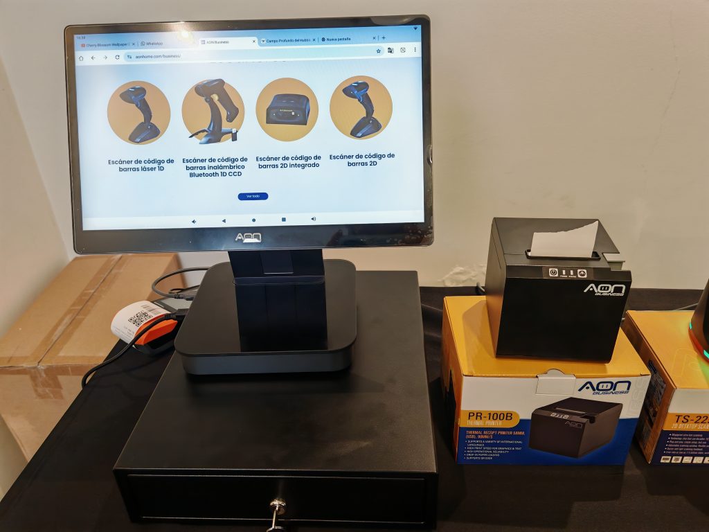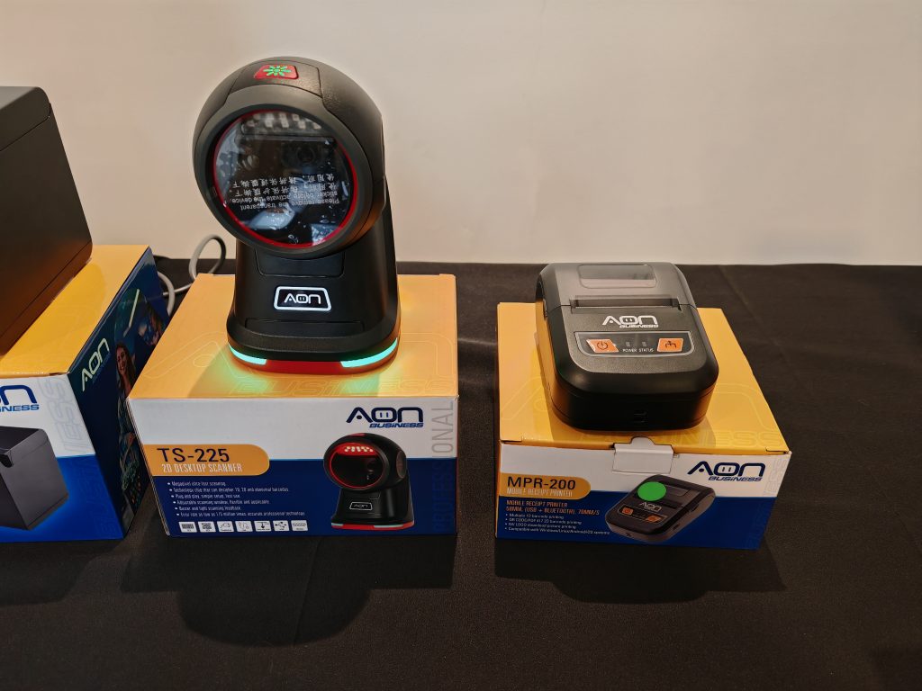 El portafolio de AON Business incluye soluciones profesionales como cajones de dinero, escáners alámbricos e inalábricos, pantallas táctiles, impresoras térmicas de punto de venta y de kiosko, terminales Todo en Uno, Mini PC´s, terminales móviles, asi como accesorios como soportes y pedestales; es decir todo para pos asistidos, pos móvil (logística, domicilios, equipos autónomos que pueden facturar en la calle) y finalmente pos autónomo.