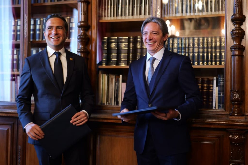 Además, el titular del MINTEL suscribió una Carta de Intención con el vicepresidente corporativo de Programación Estratégica del del Banco de Desarrollo de América Latina y El Caribe – CAF, Christian Asinelli, para establecer un marco de cooperación técnica para el diseño, estudio e implementación de proyectos que robustezcan el ecosistema digital del Ecuador.